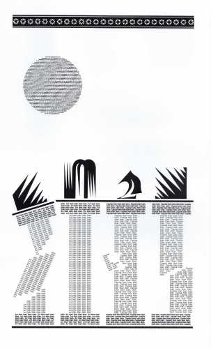 As If The Pillars of Society (1987) is a large-format (11” x 17”) spiral-bound collection of twenty-seven typographic compositions published by Clarté Press, New York in an edition of 1000 copies.