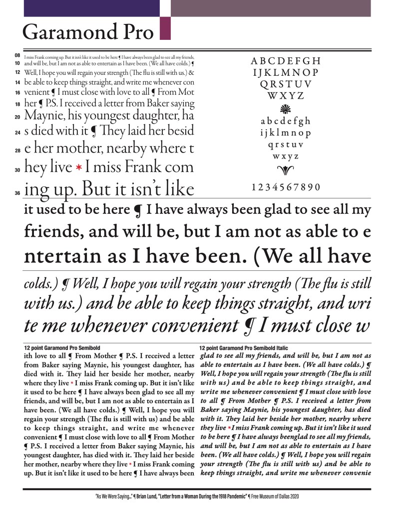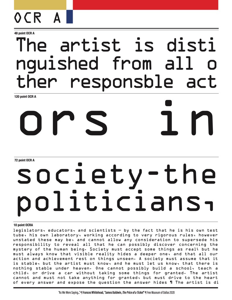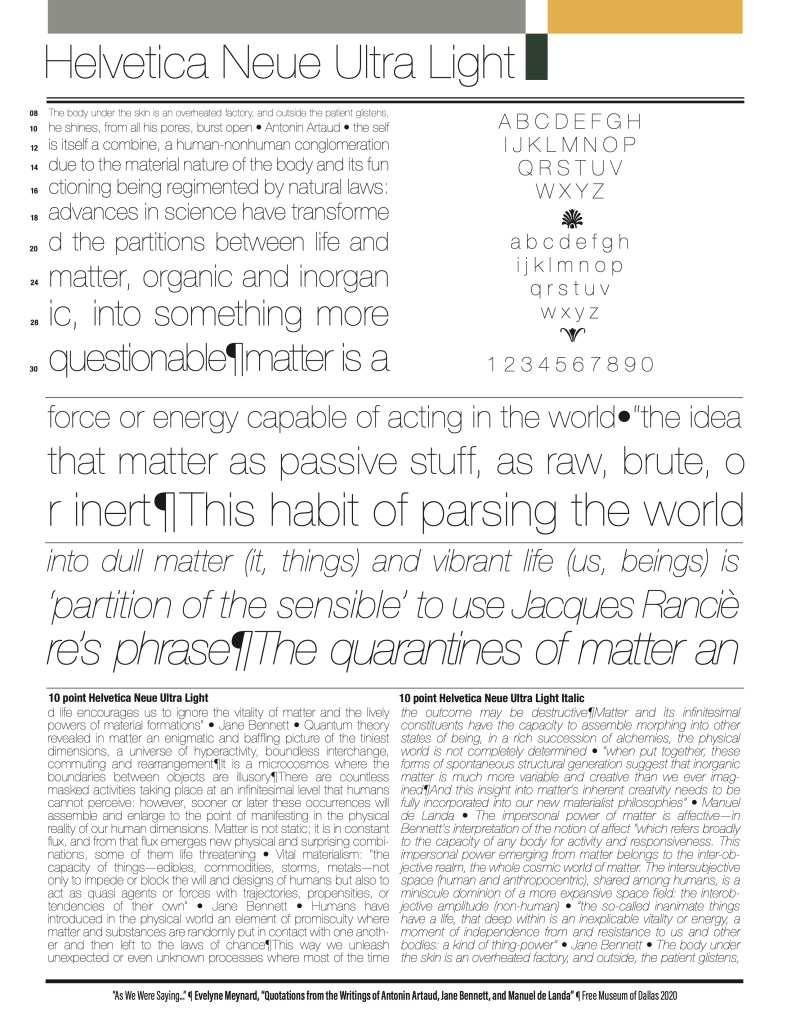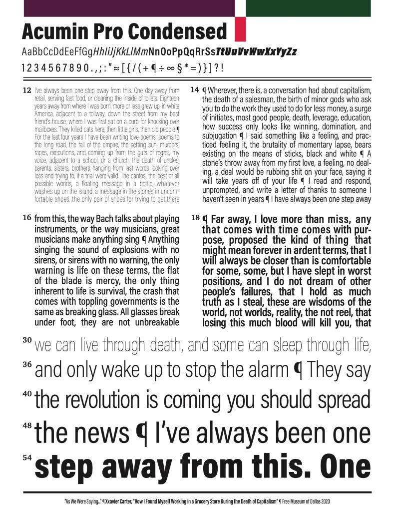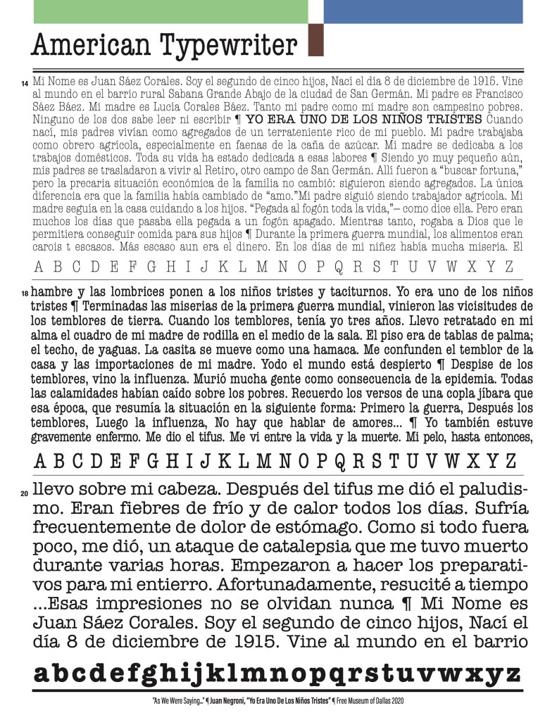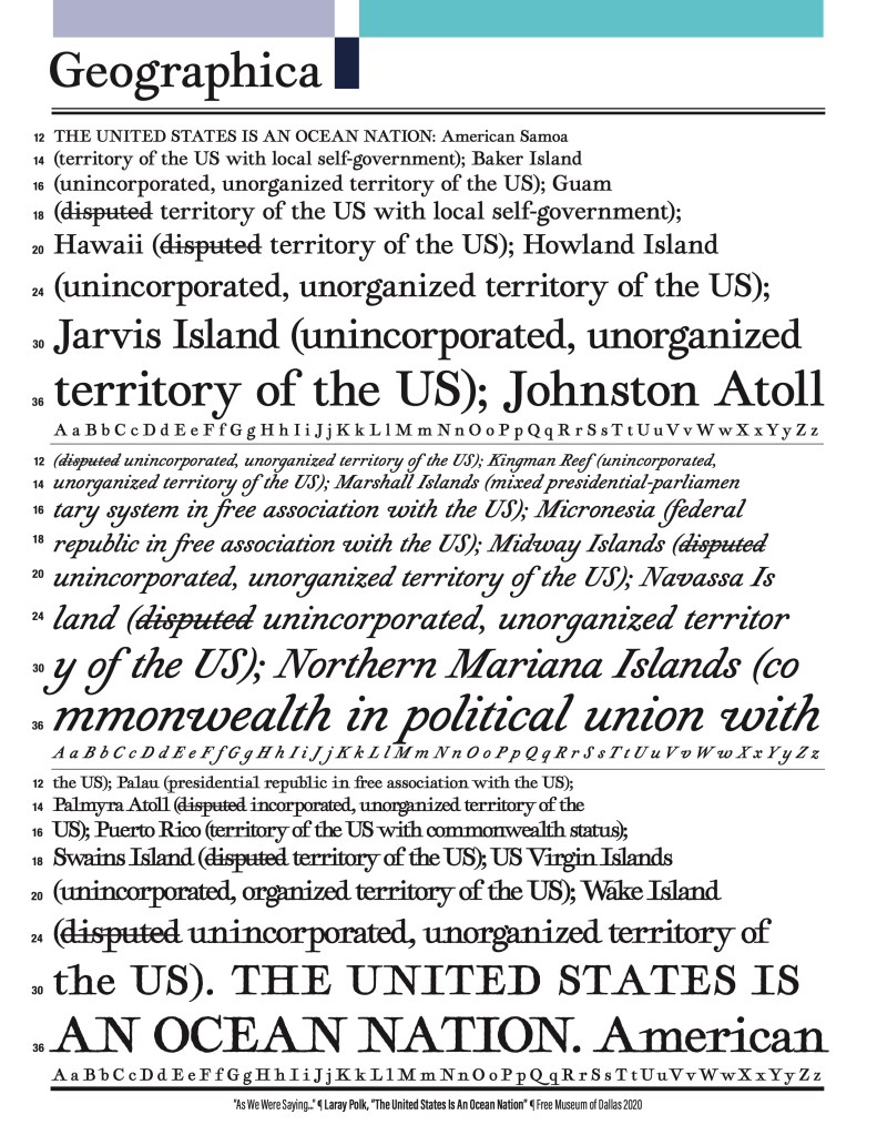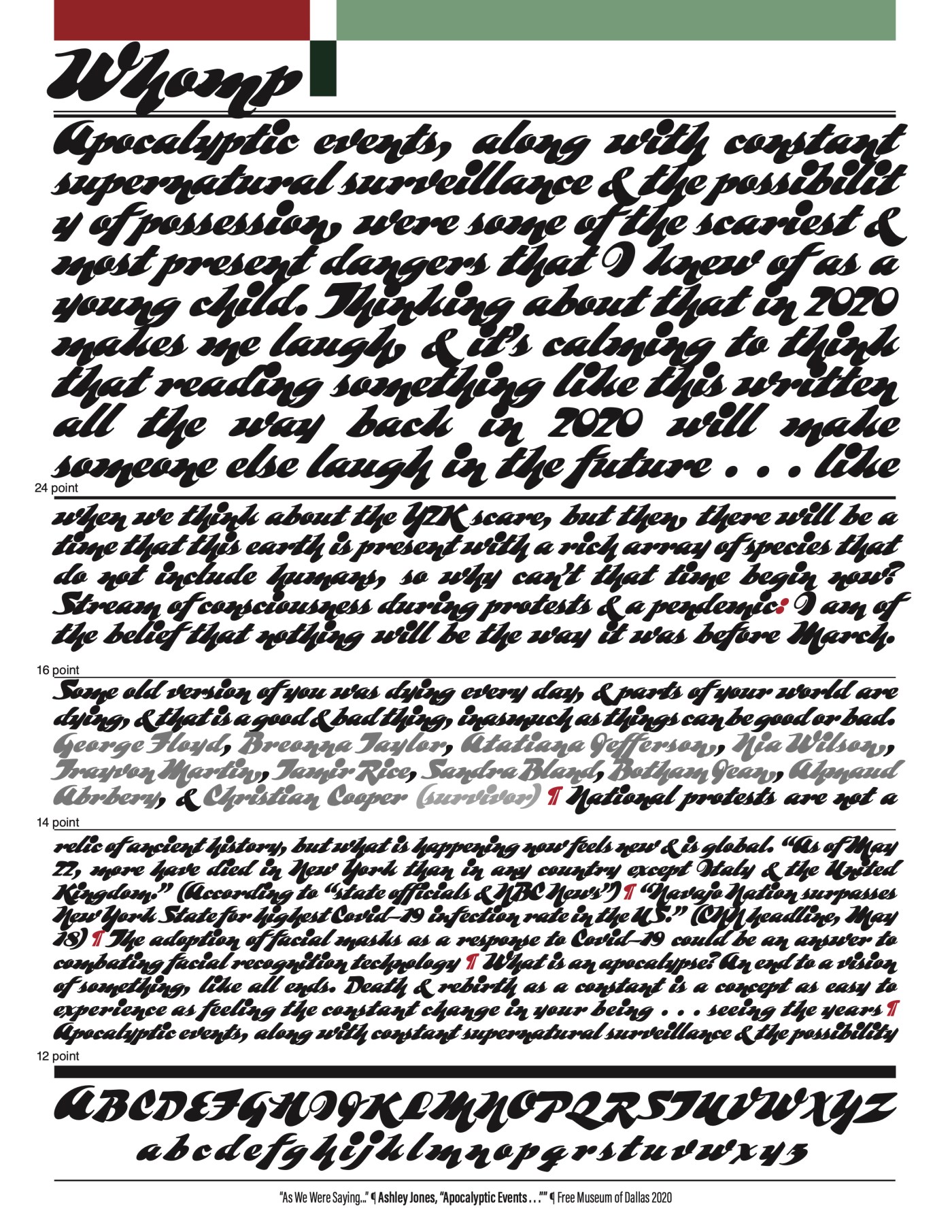 Sometimes, owing to its length, the contributor’s text will be repeated. We like to think that such a repetition suggests a possible performative use for the type sample; perhaps as a script for reading aloud in several voices.