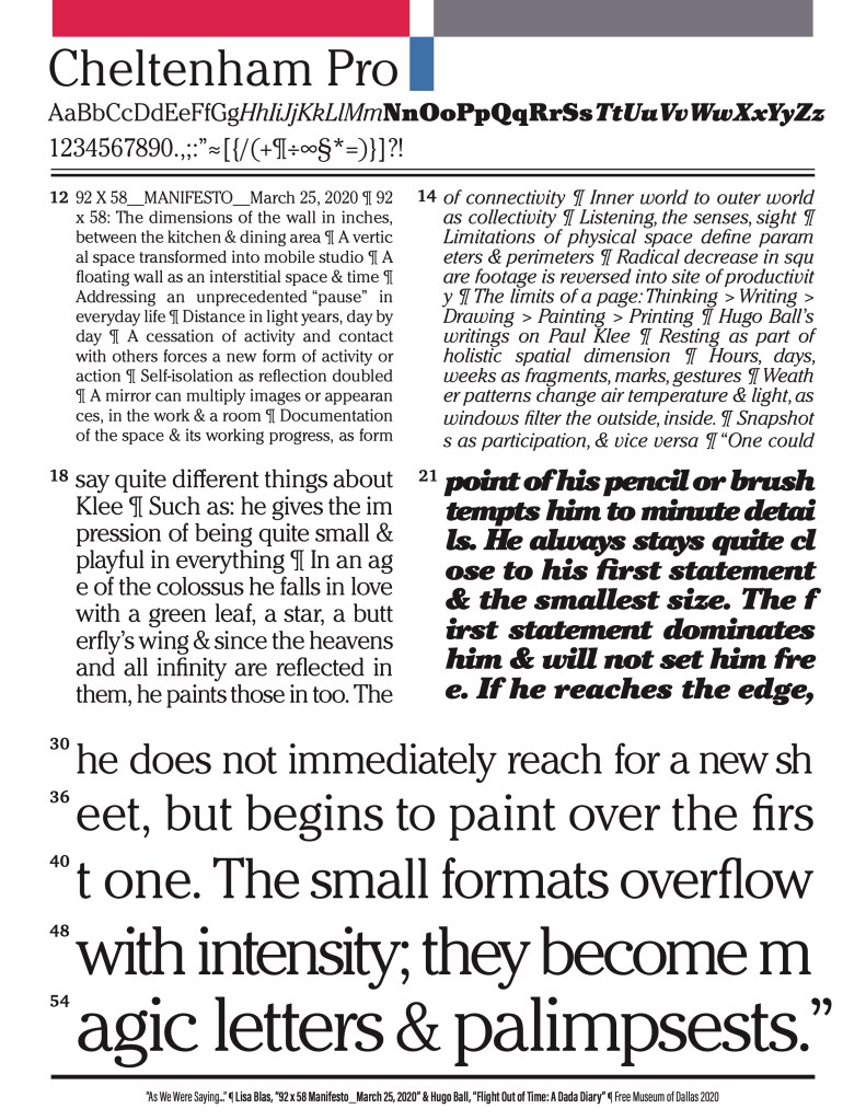 As you read these selections, you will discover random breaks of words and odd line breaks of sentences. These breaks are the result of the constraints dictated by the format of the sample sheet itself. The pace of reading and interpreting the text will be “broken”, interrupted, decelerated, and altered in unexpected ways.