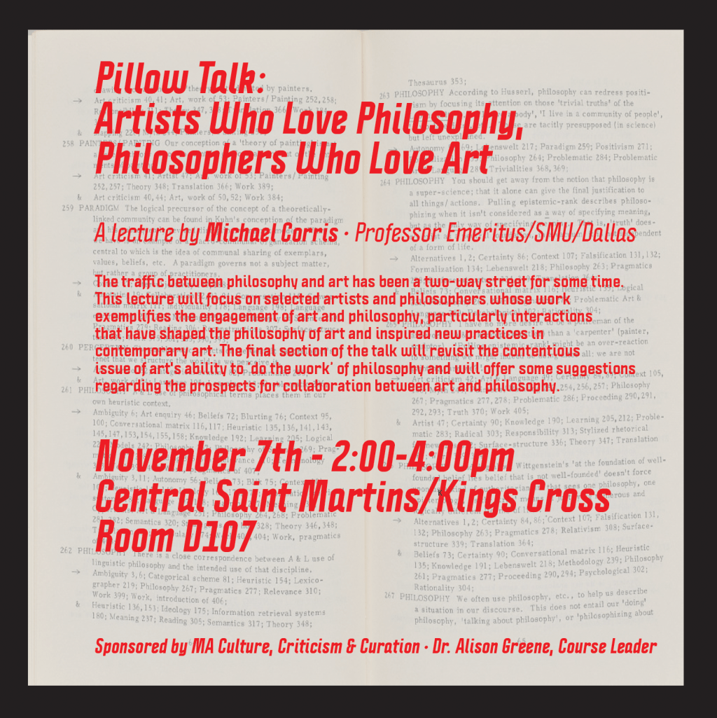 A series of lectures outlining the arguments contained in a forthcoming book on the intersection of visual art and philosophy.