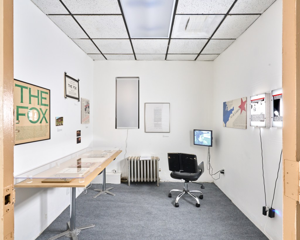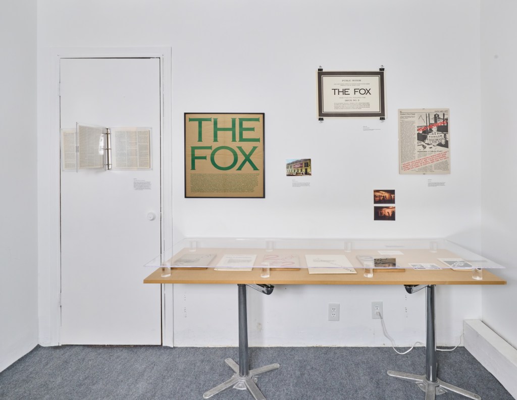 This exhibition begins with a chronology of publications, exhibitions, and projects that took place concurrently with the New York based publication, The Fox.