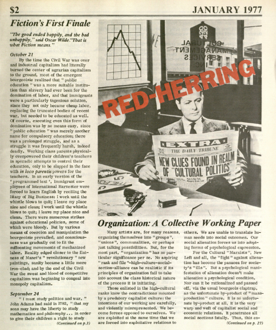 During the decade of the 1970s, Corris contributed to the journal Art-Language and was among the founding editors of The Fox (1975) and later, Red-Herring (1976).