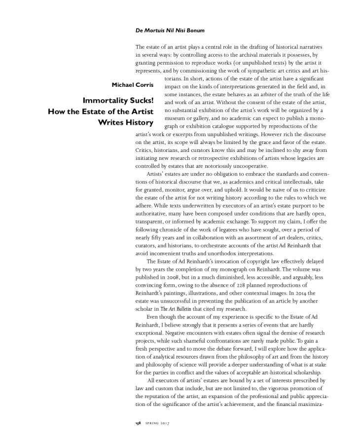 Abstract: The phenomenon of recurring international exhibitions is addressed with respect to an “aesthetic of experience” and the role played by international curators in the creation of contemporary art. Drawing on recent publications by Caroline A. Jones, Charles Green, and Anthony Gardner, it is argued that critical power of experientially immersive contemporary art projects commissioned for biennials, triennials, and documenta is highly overrated. Continue reading “Still Jet Lagged and Eye Sore (2019)”